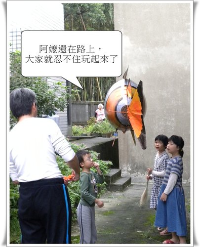 當下扁嘴哭出來的是忙著拍照的我,和才從屋裡跑出來還來不及玩的小駿。小鴻和兩位堂姊先是充滿惋惜的抬頭看著小丑魚的腹鰭,沒多久就開開心心的對著天空揮手說掰掰了,有沒有這麼達觀啊